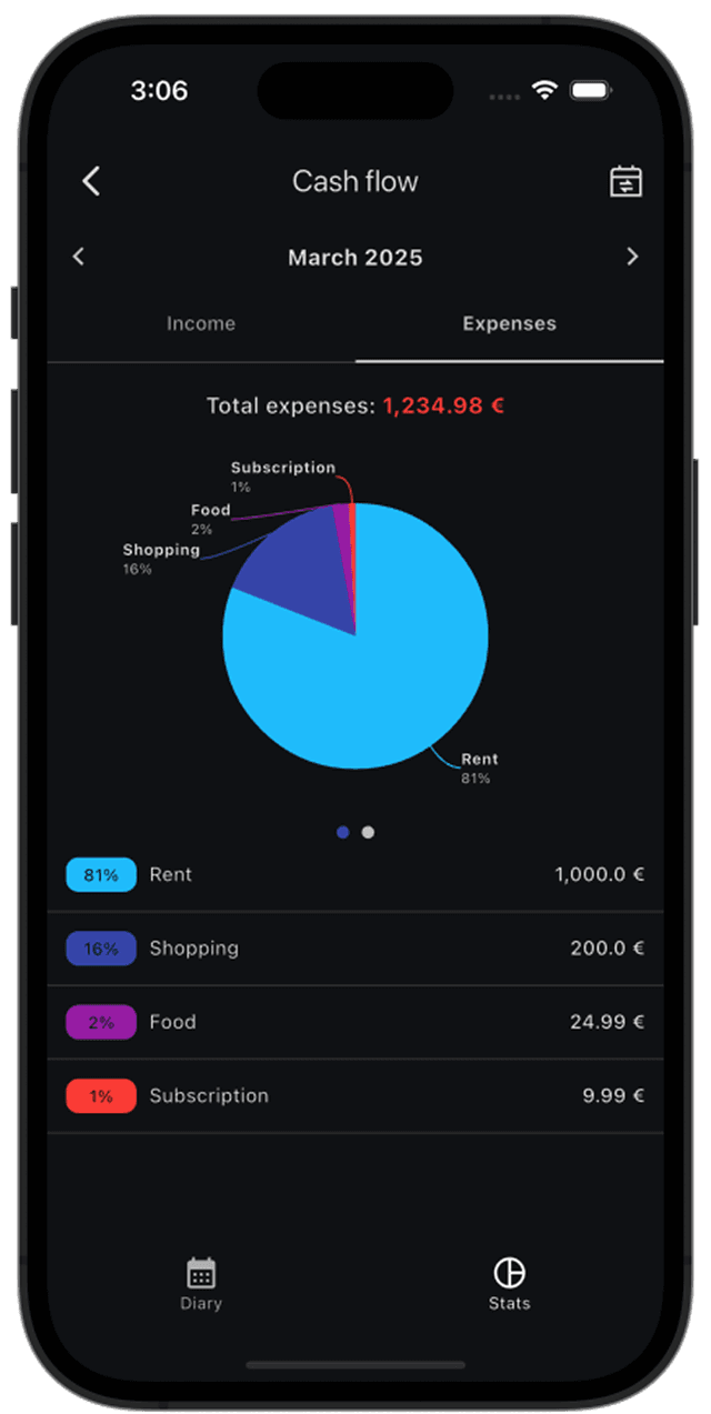 Stay on top of your finances by tracking all your expenses and income in one place, with intuitive categorization.